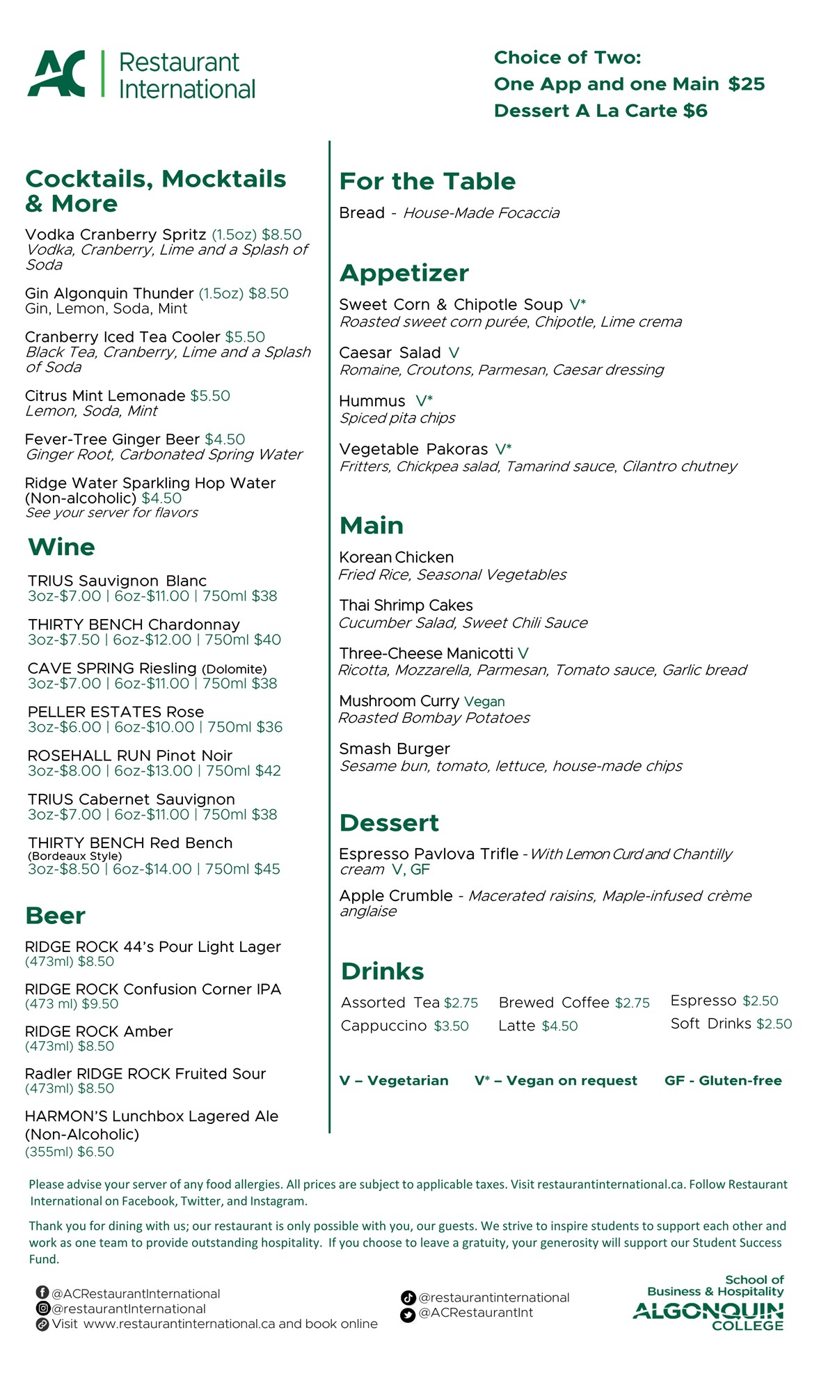 Please note: Menus change frequently as part of our student learning environment.
